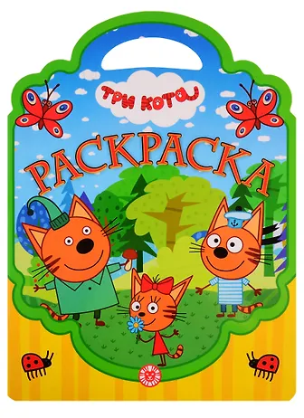 Раскраска с вырубкой "Три кота". Выполнена в виде сумочки с ручкой.