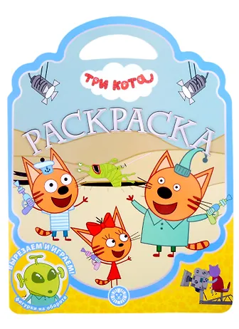 Раскраска с вырубкой "Три кота". Выполнена в виде сумочки с ручкой.