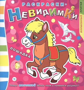 Это необычная, магическая книжка - на её волшебных страничках притаились раскраски-невидимки! Возьми монетку и аккуратно потри пустые места на страничке. И появятся рисунки! Раскрась их.
