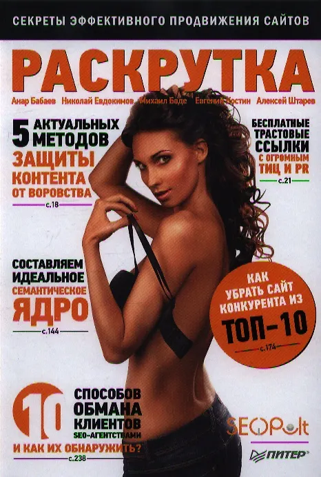 .Из книги вы узнаете основы SEO — алгоритмы, цели, принципы, особенности оптимизации. Отдельные главы посвящены специалистам, всем, кто желает построить собственную компанию и организовать SEO-бизнес, а также клиентам, использующим данный вид сервиса.