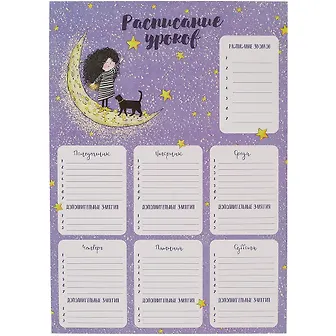 Расписание на плотной бумаге, яркая картинка, хорошая печать. Упаковка не трубочкой, получили все ровное, не помятое. Отличное качество! Моей школьнице понравилось, сама его заполнила. Хорошо, что есть место не только для уроков, но и для дополнительных занятий. Цена-качество вообще отличное! Рекомендуем к покупке!