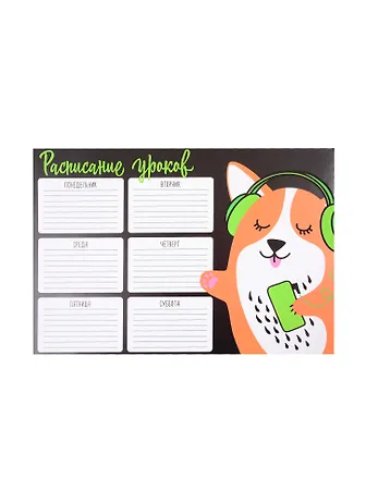 Расписание уроков А4 "КОРГИ С ПЛЕЕРОМ" мелов.картон, выб.Уф-лак