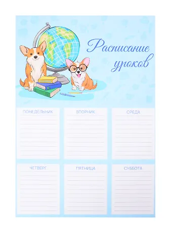 Расписание уроков А4 "КОРГИ ЗА УЧЕБОЙ" мелов.картон, выб.Уф-лак