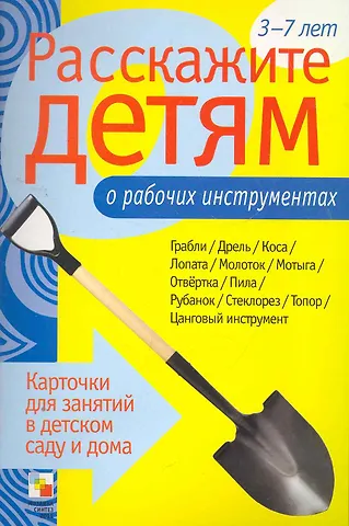 Пособие с яркими четкими картинками поможет Вам рассказать малышам о рабочих инструментах. Они узнают много нового и интересного о граблях, мотыгах, отвертках, пилах, стеклорезах и о многих других. На оборотной стороне карточек содержатся необходимые сведения о них. Эта информация поможет сделать ваш рассказ увлекательным и познавательным для каждого малыша.