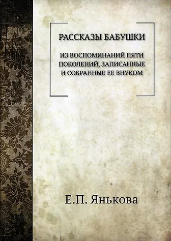 Из воспоминаний пяти поколений, записанные и собранные ее внуком. Эта "бабушка" - Елизавета Петровна Янькова (1768-1861). внучка историка В.Н. Татищева, урожденная Римская-Корсакова, связанная родственными узами с Щербатовыми, Шаховскими. Архаровыми, Нащокиными, Салтыковыми. Вяземскими и многими другими. Она постоянно жила в Москве и умерла в возрасте 93 лет, живо помнила семейные предания, доходившие до времени Петра 1, рассказывала их с удивительными подробностями, помня даже годы и числа, - была живой летописью всего XVIII и половины XIX столетия. Все это записал за ней ее внук Дмитрий Дмитриевич Благово (1827-1897. в монашестве архимандрит Пимен)."Рассказы бабушки" впервые были опубликов