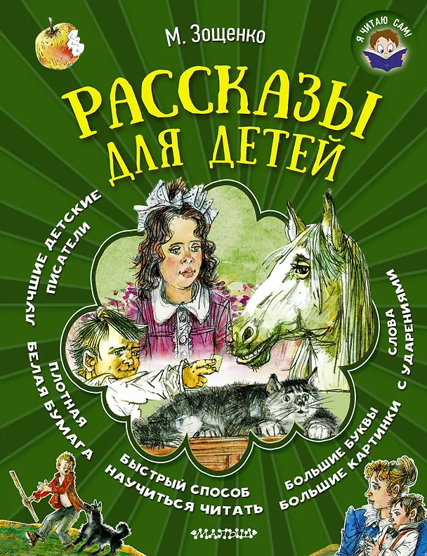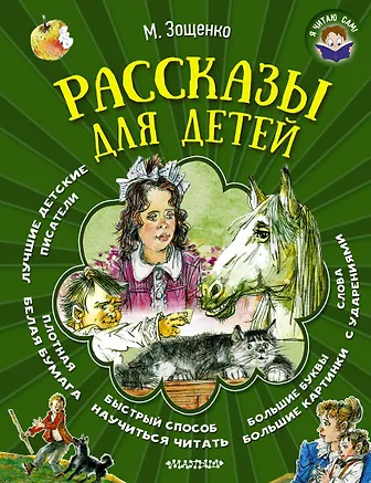 Смешные и поучительные рассказы Михаила Зощенко о детях и животных уже многие годы с удовольствием читают и маленькие и взрослые. Неповторимый остроумный язык писателя и смешные карикатурные иллюстрации делают книгу прекрасным подарком для первого чтения. Крупный шрифт и ударения в словах сделают процесс чтения лёгким и интересным.