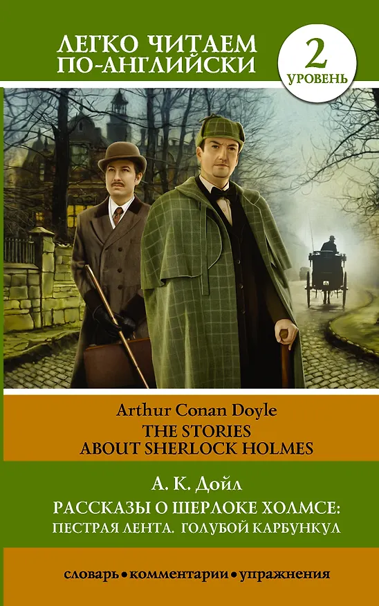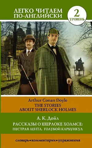 В книгу вошли два известных рассказа прославленного Артура Конан Дойля – «Пестрая лента» и «Голубой карбункул», которые увидели свет в 1892 году и с тех пор не перестают вызывать интерес у всё новых поколений читателей. Текст рассказов незначительно сокращен и адаптирован. Наиболее сложные для понимания обороты и выражения сопровождаются комментариями. Предлагаются также разные виды упражнений и любопытные факты об Англии тех времен. В конце книги дан небольшой англо-русский словарь, содержащий основную лексику, использованную в рассказах.