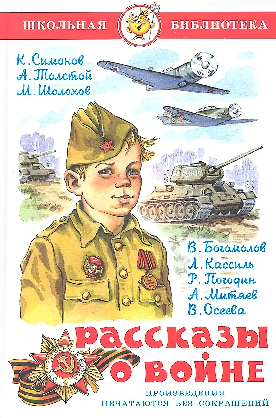 Рассказы о войне. Подборка рассказов- что надо. Самые известные, самые лучшие рассказы- И Константина Симонова, и Андрея Платонова, и Михаила Шолохова. и других писателей. Иллюстрации отличные, как будто это фотографии с мест событий.. Приятно порадовалась- наконец то нормальное издание, которое будут читать дети. Мой ребенок , во всяком случае, с интересом прочитал, и даже, я смотрю, задумался.