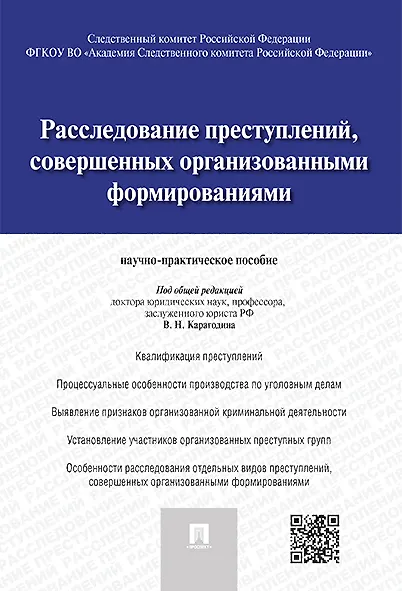 В научно-практическом пособии на основе анализа современной следственно-судебной практики рассмотрены актуальные проблемы расследования преступлений, совершенных организованными формированиями. Авторы книги последовательно исследуют вопросы уголовно-правовой оценки таких деяний, процессуальные и криминалистические аспекты производства по уголовным делам данной категории. Особое внимание уделено методике расследования убийств и преступлений в сфере экономики, совершаемых криминальными объединениями. Предлагаются конкретные рекомендации по проверке сообщений о деяниях рассматриваемого вида и осуществлению предварительного следствия. Законодательство приведено по состоянию на ноябрь 2014 г. Для