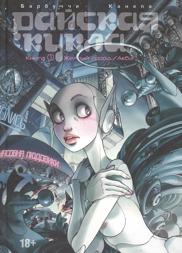 В эту книгу вошли истории "Желтый город" (2000) и "Аква" (2002), а также материалы из дополнительных сборников "Фабрика кукол" (2002) и "Декады" (2015): комикс-предыстория, наброски персонажей и множество красочных иллюстраций разных художников, вдохновленных миром "Райской куклы".