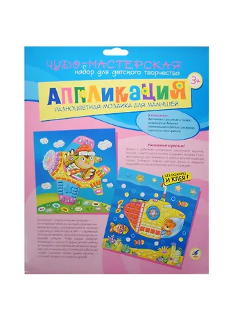 Разноцветная мозаика д/мал. Самолет/Подводная лодка (2835) (2 картинки) (+самокл. дет. из мягк. пластика) (3+) (упаковка)
