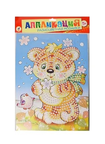 Мозаика из квадратиков, изготовленных из мягкого пластика ЭВА, на который с одной стороны наклеяна цветная пленка, а с другой - самоклеящаяся. В набор входят: картинка-основа для аппликации, квадратики из мягкого пластика на самоклеящейся основе 8 цветов, декоративные элементы (стразы, глазки и др.)