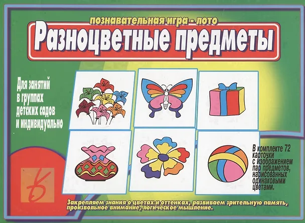 Игра способствует закреплению знаний об основных цветах и их оттенках, а также развитию зрительной памяти, логического мышления и произвольного внимания.