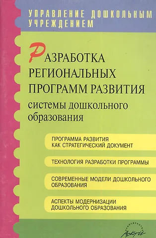 Приведены задачи и основные механизмы разработки региональных программ развития системы дошкольного образования. Для методистов информационно-методических центров и работников органов управления образованием.