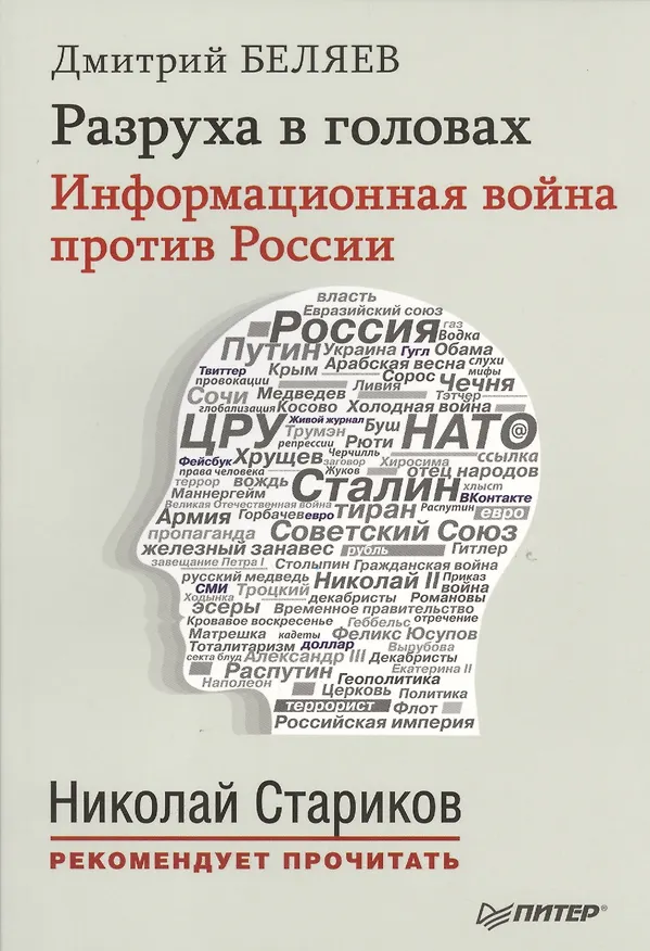 Разруха в головах Информационная война против России. Книга поражает своей откровенностью. Дмитрий Беляев рассказывает о тм, как нам засоряют мозг, а особенно европейцам, заставляя поверить, что у нас нет будущего, и что Америка действует во благо. То, что их спецслужбы прослушивают наши телефонные разговоры- цветочки. Как то забываешь, что мы- великая страна, и нам есть чем гордиться. Мы в стольких войнах победили! Советую всем, особенно молодым, чтобы не попадаться на удочку.