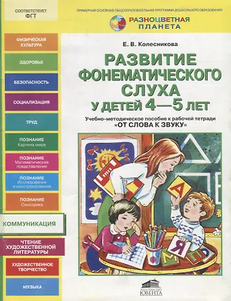 Елена Колесникова «Развитие фонематического слуха у детей 4-5 лет. Учебно-методическое пособие к рабочей тетради "От слова к звуку"» и выбрать удобный способ его получения: самовывоз, доставка курьером