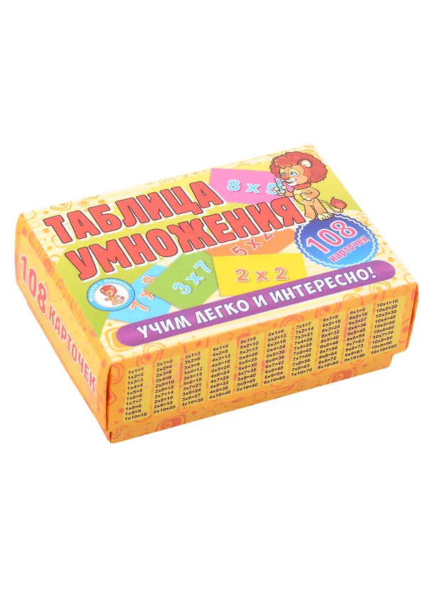 Интересные игры с примерами умножения и примерами в картинках представлены на карточках внутри набора. Они помогут детям в интересной форме закрепить знания таблицы умножения.