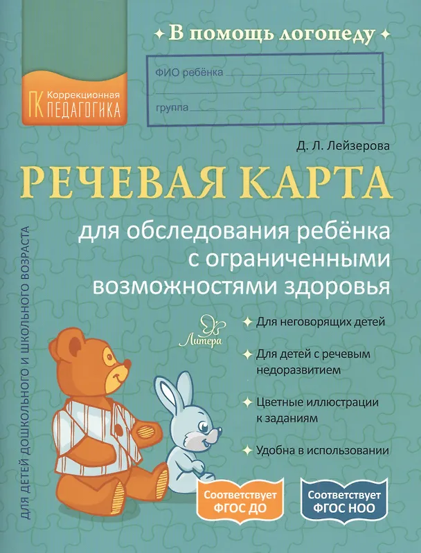 Вашему вниманию предлагается: "Речевая карта для обследования ребёнка с ограниченными возможностями здоровья" Лейзерова Дана Леонидовна.