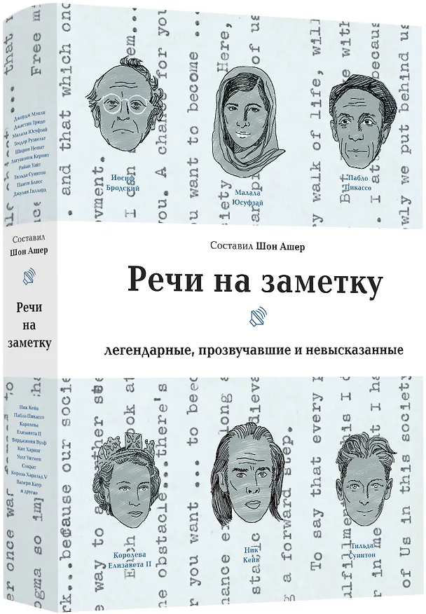 Тильда Суинтон говорит о своём "брате-фрике" Дэвиде Боуи; Пабло Пикассо выступает за жизнь против смерти; Виктор Гюго протестует против смертной казни; Сьюзен Зонтаг предостерегает от умственной лени, а Салман Рушди призывает бросать вызов богам. Речь Марка Твена в день его семидесятилетия давно разобрана на цитаты, а речь Королевы Елизаветы II о начале Третьей мировой войны, хоть и была написана, но, к счастью, так и не прозвучала.