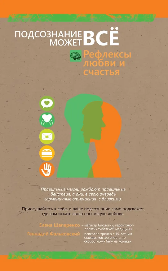 Что такое настоящее счастье? Что такое настоящая любовь? Мы так часто слышим эти слова в жизни, но так мало представляем себе, что они означают в реальности. В большинстве случаев нашими чувствами управляют гормоны, шаблонное мышление окружающих, наши страхи и переживания. Отсюда берут истоки ссоры и недопонимания с близкими людьми. Эта книга познакомит читателя с самим собой, раскроет секреты истинных здоровых отношений и позволит через подсознание разобраться, что же такое настоящее счастье. Поможет найти его и сохранить на долгие годы.