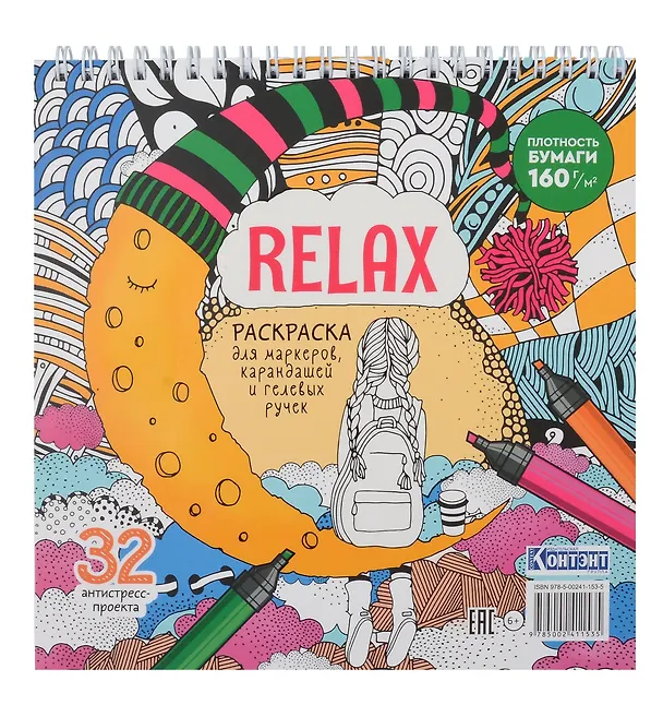 Relax Раскраска для маркеров, карандашей и гелевых ручек. 32 антистресс-проекта