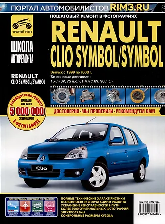 Renault Clio Symbol/ Symbol с 1999-2008 гг. Бензиновые двигатели 1.4 (8V, 16V), ч/б фото. Руководство по ремонту. Школа Авторемонта