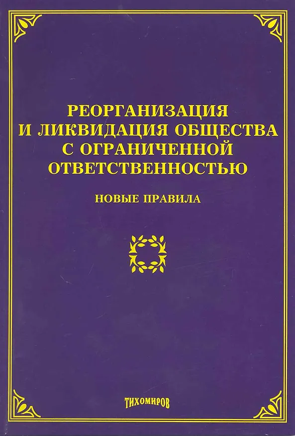 Книга «Реорганизация и ликвидация общества с ограниченной ответственностью: новые правила / (мягк). Тихомиров М. (Учкнига-К)» есть в наличии в интернет-магазине «Читай-город»