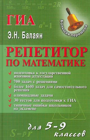 .Репетитор адресован учащимся 5-9 классов для самостоятельного повторения основных тем программы, подготовки к ГИА, олимпиадам различного уровня, а также студентам педучилищ, учителям математики и репетиторам.