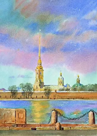 Репродукция в рамке Нева и Петропавлов.крепость с Дворцовой набережной м/ф [ХА60-029 (рам)]