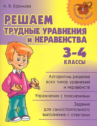 Книга поможет заботливым родителям объяснить детям новый или непонятный материал по математике, связанный с решением уравнений и неравенств, с которыми знакомятся младшие школьники в начальной школе на уроках математики. Учащимся 3 и 4 классов пособие поможет закрепить полученные на уроках знания на разнообразном материале. Раздел «Закрепление пройденного материала» включает в себя задания, которые школьник должен выполнить самостоятельно. Ответы на все задания приведены в конце книги.