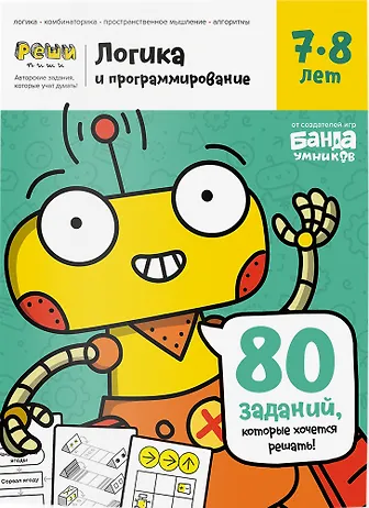 Не только программисты имеют дело с алгоритмами! Развитое логическое и аналитическое мышление помогает находить эффективные варианты решения задач: как в учёбе, так и в повседневной жизни. В этой тетради детям предстоит выявлять закономерности, действовать в рамках заданных алгоритмов и создавать свои собственные, а также анализировать предложенные ситуации. По сравнению с тетрадью для 5-6 лет, в этих заданиях появляется больше условий, ребёнок знакомится с мультипликаторами и циклами.