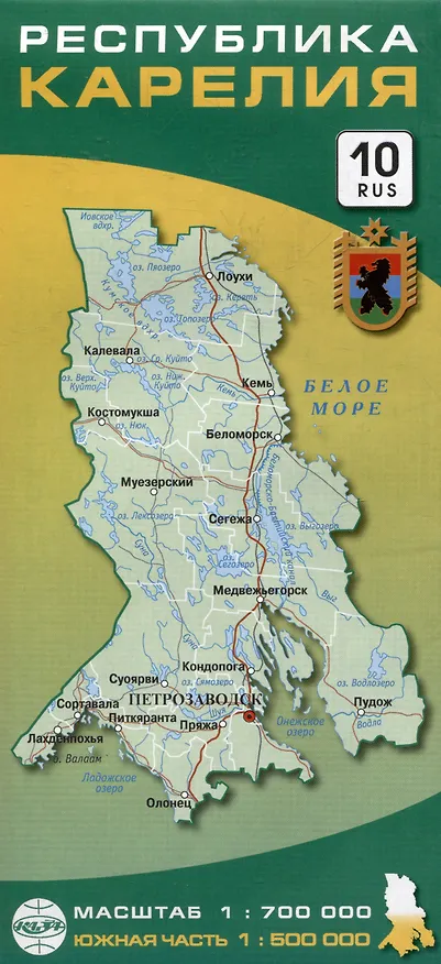 Масштаб: 1:700 000 (Республика Карелия), 1:500 000 (южная часть)