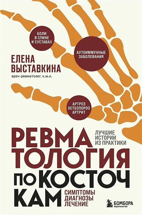 "Почему нельзя терпеть боль, полезен ли холодец для суставов, бывает ли перелом на ровном месте, и другие удивительные факты о ревматологических симптомах и диагнозах. За каждым диагнозом следует история, где главный герой - живой (реальный) человек со своим диагнозом, испытаниями и победами. Для всех, кому интересно заглянуть за кулисы медицины. Автор - Елена Выставкина — врач-ревматолог, преподаватель в РостГМУ, кандидат медицинских наук, мама троих детей, более пяти тысяч благодарных пациентов.