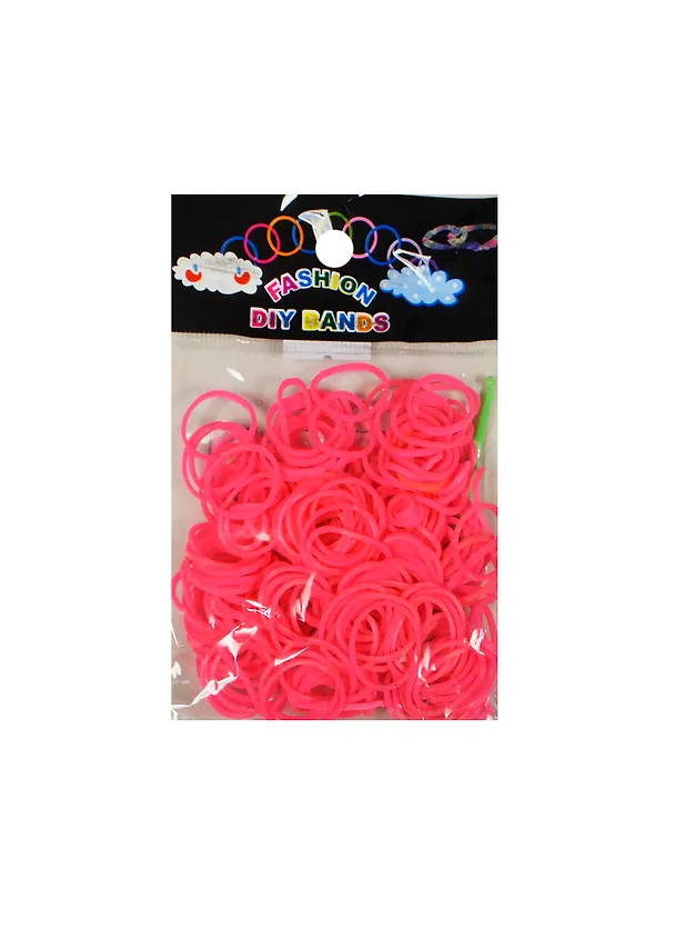 Резиночки для плет. браслетов с инструментом розовый кислот. (11000402) (200шт) (упаковка)