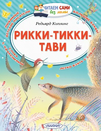 Захватывающая и поучительная сказка «Рикки-Тикки-Тави» про маленького, но храброго мангуста из знаменитой «Книги джунглей» Редьярда Киплинга научит вашего ребёнка отваге, доброте и взаимопомощи. Малыш также познакомится с птицей Дарзи, умеющей сочинять песни, с трусливой крысой Чучундрой и вступит в бой с ядовитыми кобрами. Крупные буквы и ударения помогут ему самостоятельно прочитать любимую многими поколениями историю.