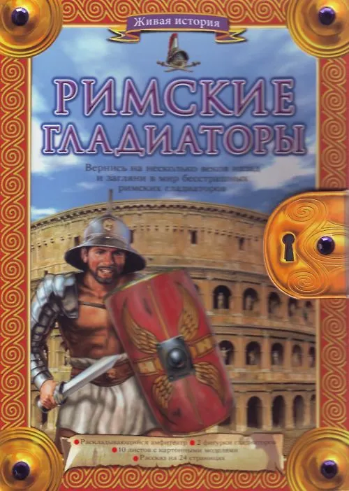 Присоединись к отважным гладиаторам Древнего Рима. Войди в раскладывающийся амфитеатр, установи арену, прими участие в гладиаторских боях, посмотри гонки на колесницах. Читай страницу за страницей, оживляй фигурки и сражайся не на жизнь, а на смерть. Узнай все о жизни в Древнем Риме и о славном веке гладиаторов!