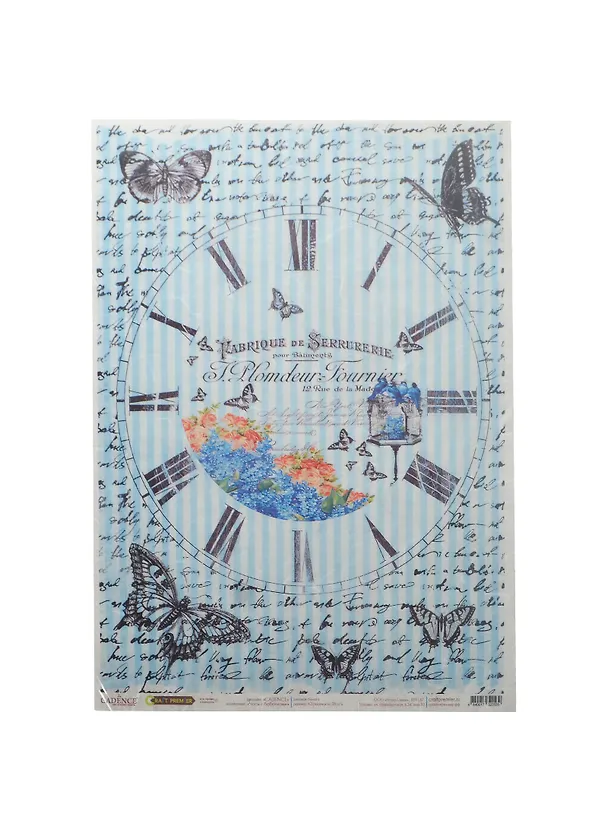 Рис. бумага для декупажа Cadence Craft Premier Часы с бабочками (CP00539) (А3) (25г/м) (упаковка)