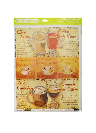 Рис. бумага для декупажа Cadence-Craft Premier Кофейня (CD05227) (А3) (25г/м) (упаковка)