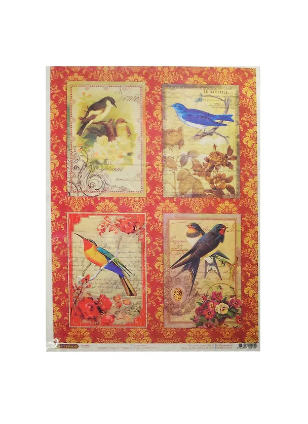 Рис. бумага для декупажа Craft Premier Открытки с птицами (CP00324) (А3) (25г/м) (упаковка)