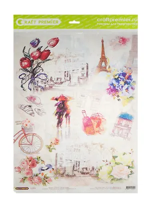 Рисовая бумага для декупажа "Craft Premier", A3, 25г/м, "Медовый месяц", CPD002