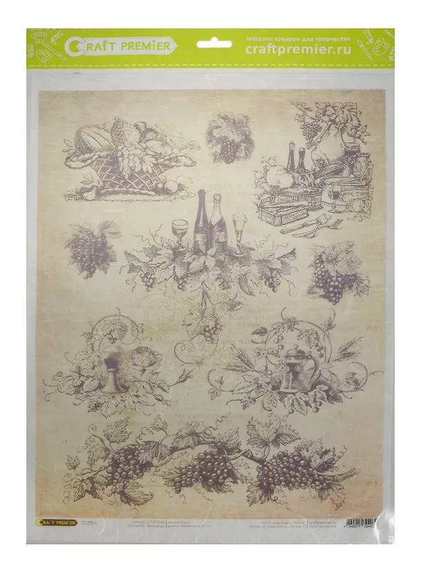 Рисовая бумага для декупажа Craft Premier, A3, 25г/м, Прованс.Виноград