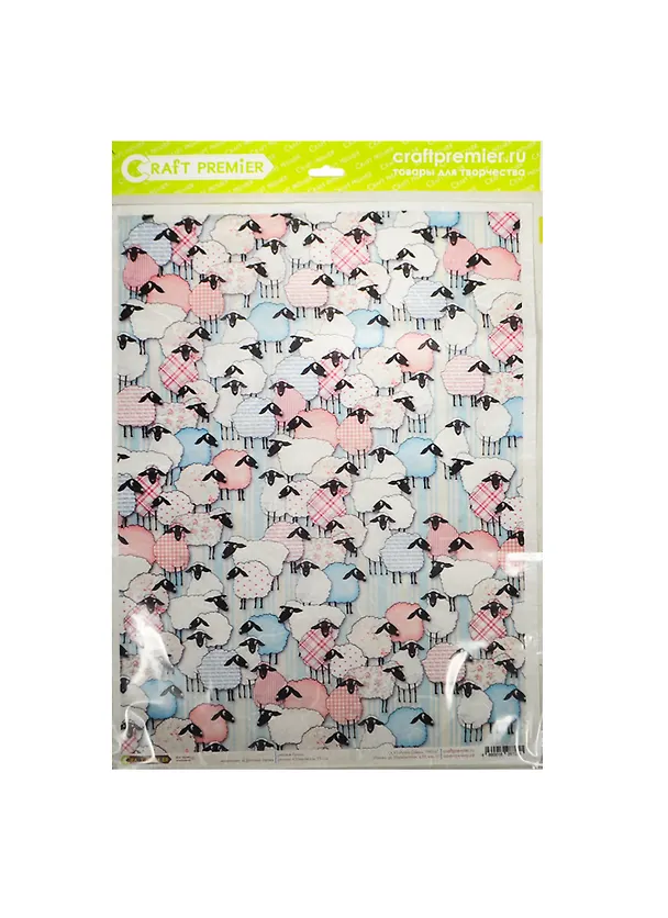 Рисовая бумага для декупажа Craft Premier Цветные овцы (CP07251) (А3) (25г/м) (упаковка)