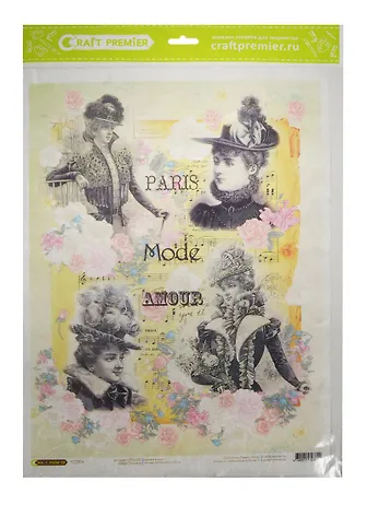 Рисовая бумага для декупажа Craft Premier Дамы Парижа (CPD0530) (А3) (25г/м) (упаковка)