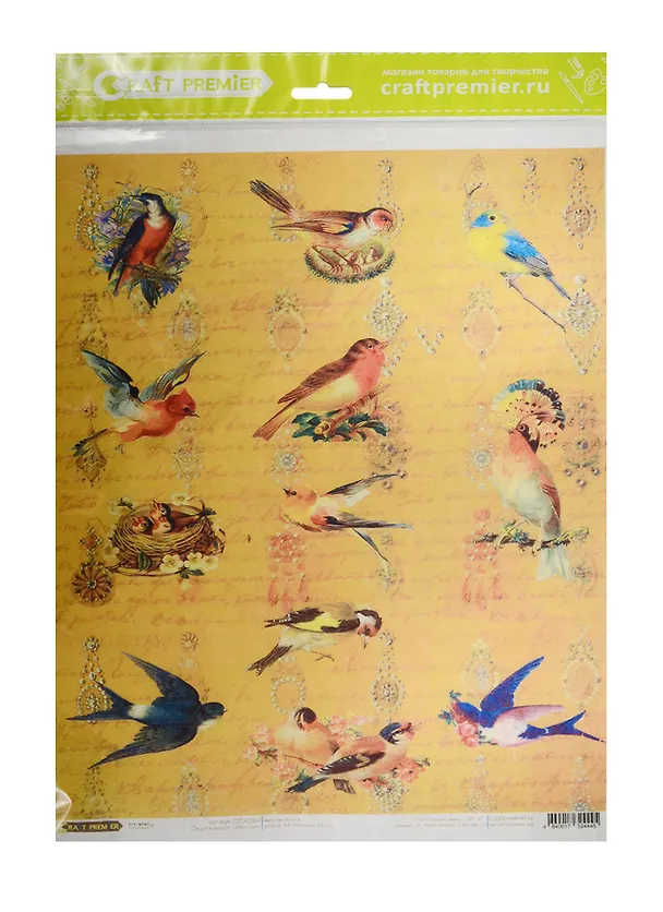 Рисовая бумага для декупажа Craft Premier Экзотическое оперенье (CPD0584) (А3) (25г/м)