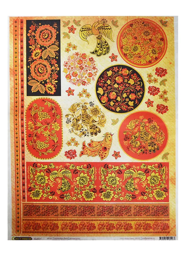 Рисовая бумага для декупажа Craft Premier Хохлома1 (CP00467) (28,2х38,4см) (25г/м) (упаковка)