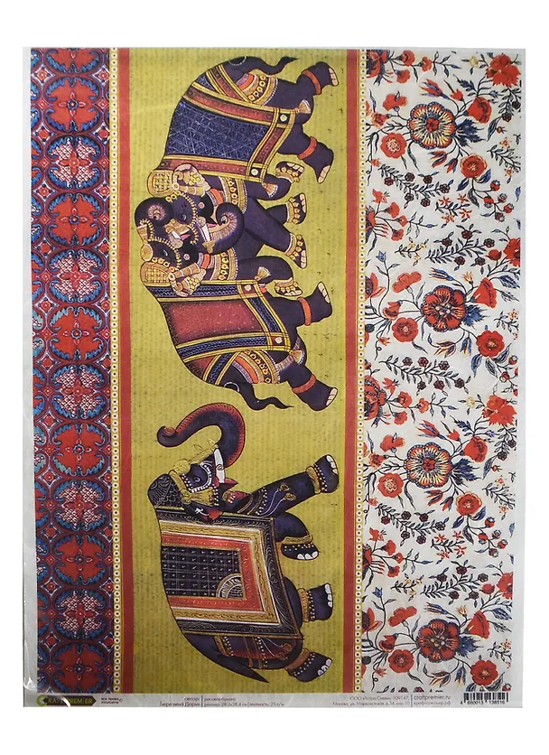 Рисовая бумага для декупажа Craft Premier Индийские слоны (CP08516) (28,2х38,4см) (25г/м) (упаковка) (Астра Севен)