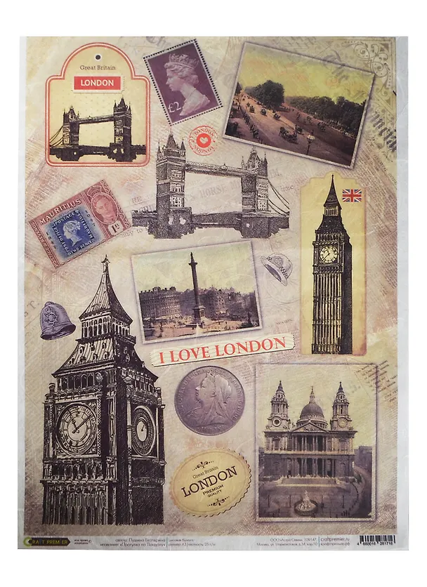 Рисовая бумага для декупажа Craft Premier Прогулка по Лондону (CP01716) (А3) (25г/м) (упаковка)