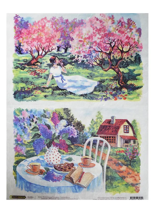 Рисовая бумага для декупажа Craft Premier Яблоневый сад (CP01792) (А3) (25г/м) (упаковка)