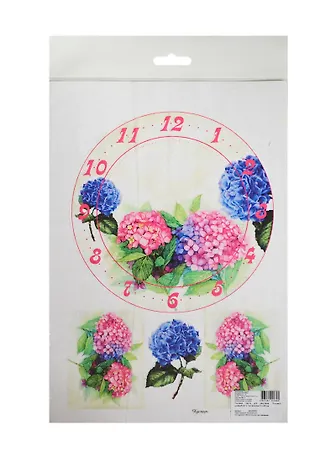 Рисовая карта для декупажа Розовый циферблат с гортензиями (АМ400005) (21х29см) (упаковка)