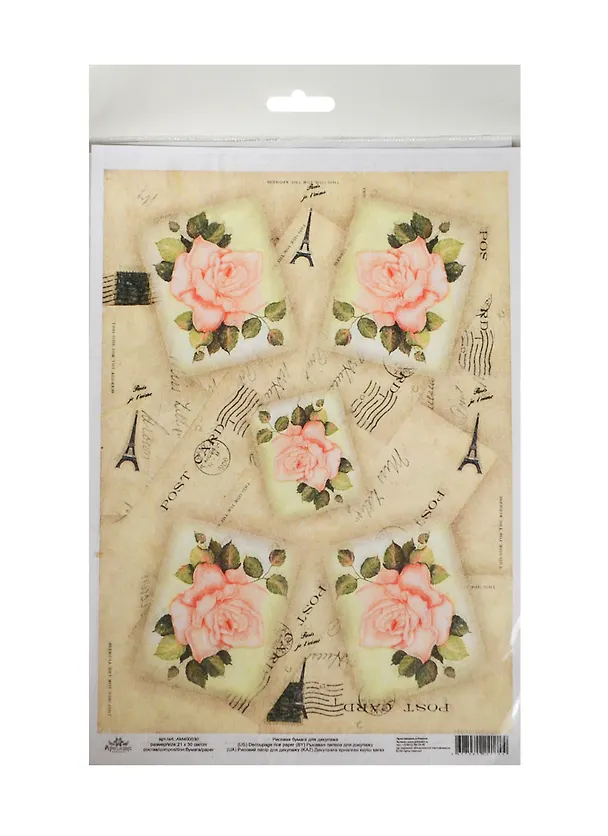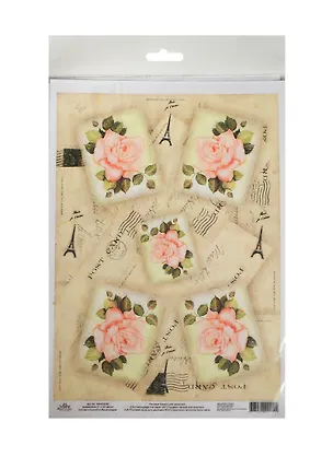 Рисовая карта для декупажа Розы с Эйфелевой башней (АМ400030) (21х30см) (упаковка)